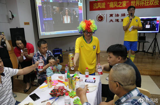 2018年6月22日晚,60余位痛風(fēng)患者及家屬一起歡聚沈陽(yáng)抗風(fēng)竤中醫(yī)門(mén)診二樓多功能廳,和抗風(fēng)竤的醫(yī)生、護(hù)士、康復(fù)指導(dǎo)師們,一起度過(guò)了個(gè)難忘的世界杯之夜。