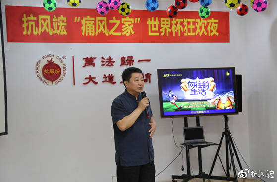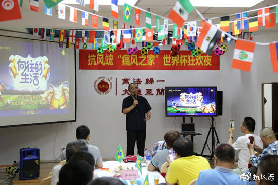 此次舉辦抗風(fēng)竤“痛風(fēng)之家”世界杯狂歡之夜活動(dòng)就是借俄羅斯世界杯之機(jī),將“綠色安全、尊重自然”的防痛風(fēng)、治痛風(fēng)理念傳播到廣大風(fēng)友中去,幫其提高如何正確治療痛風(fēng)的意識(shí),讓風(fēng)友們?cè)?ldquo;吃喝玩樂(lè)中”趕走病痛,樂(lè)享人生。