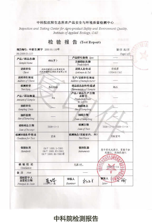 2008年的金秋,我把這個天賜地造的靈物送到了“中科院營養(yǎng)檢測中心”,檢測結(jié)果非常驚人,報告中顯示:抗風(fēng)竤·東北雌性紅蘿卜跟普通蘿卜相比較,鉀高出25.8倍、鈣高出2.3倍、磷高出2倍、硒高出3.1倍。其中鉀就有調(diào)節(jié)人體酸堿平衡、中和血尿酸的作用,并參與嘌呤和糖的代謝;鈣是酶的激活劑,能促進(jìn)嘌呤的代謝;磷可以快速提高人體自愈力,促進(jìn)受損器官的修復(fù);硒則是微量元素中的抗癌之王,能延緩衰老、預(yù)防慢性病的發(fā)生,硒還是人體DNA修復(fù)酶的激活劑。這些元素混然天成一個“自然、均衡、安全、有效”的有機(jī)體,與藥物的人工合成有著本質(zhì)的區(qū)別。